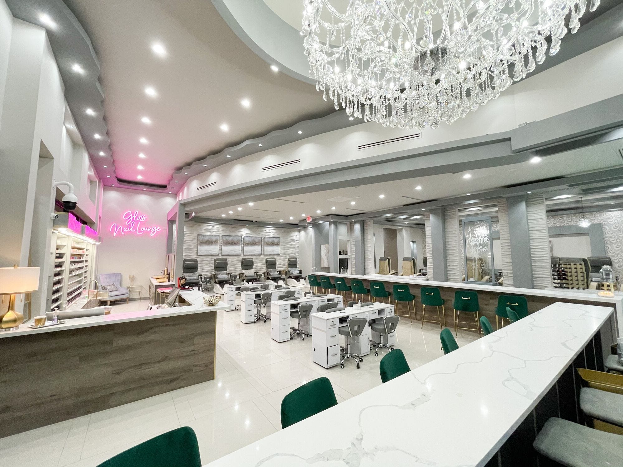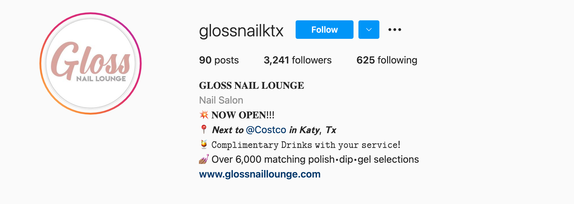 Glossnailktx offers a variety of services including manicures, pedicures, artificial nails with highly skilled nail artists that can turn their customer's nails into reality. They offer top-of-the-line mixed drinks with their full-service bar. Not to mention that it is all complimentary. Modern, sleek, and unmatched services this great establishment is located next to Costco in Katy TX right at 99/I-10.