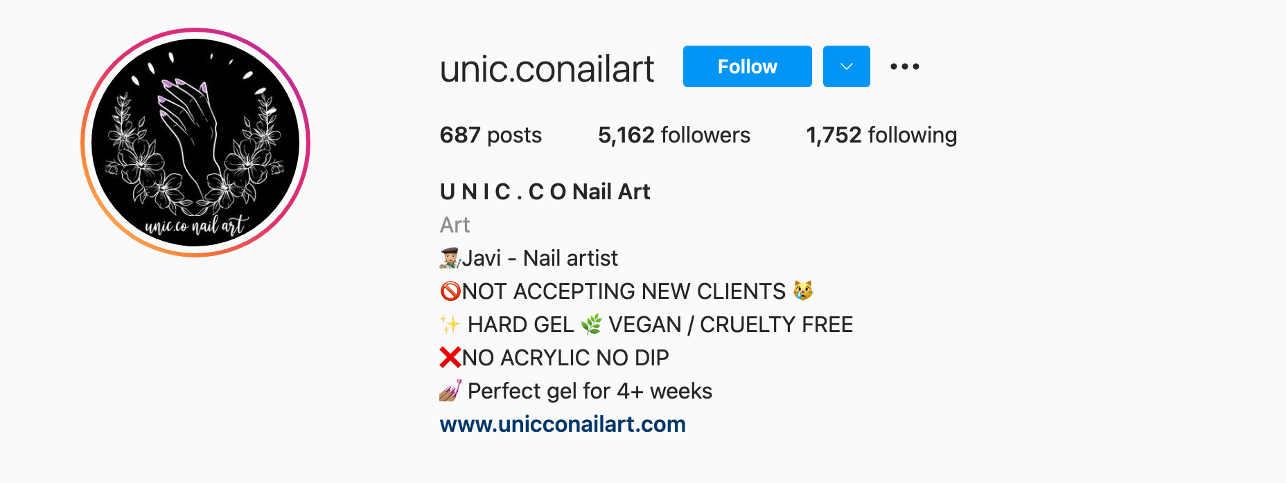 Javi Pizarro is the owner and creator of Unic.co Nail art. They are a space dedicated to the care and design of natural nails. They work only with cruelty-free products because they love animals and they respect them. Their products are vegan which helps them maintain the health of the nail.